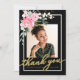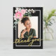 Hot Pink Floral Graduation Photo Thank You Card