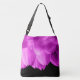 Hot pink flower petals on black crossbody bag