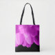 Hot pink flower petals on black tote bag