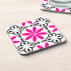 Super cute hot pink, black, and white kaleidoscopic flower pattern on a pretty set of coasters.