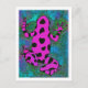 Tropical inspired bright pink frog with black spots on a multi-coloured background. Created by Diane G Addis Photo Art and Design.