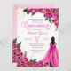 Hot Pink Fuchsia Roses & Gold and Gown Quinceañera Invitation