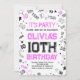 Hot Pink Girls Number Ten Birthday Party Invitation