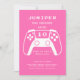 Level up her birthday with this fun and girly gamer invitation! Designed with a bold hot pink color and game controller graphics, it’s perfect for girls who love gaming. Easy to personalize with party details and available as a printed card or digital download. A great choice for a cool and modern video game-themed birthday party.