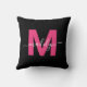 Personalised Magenta Pink Initial Name Monogram Throw Pillow. This stylish monogram pillow pairs a modern minimalist look with a sophisticated, trendy flair, making it a versatile accent for any room. It features a bold hot pink magenta initial against a sleek black background, with an elegant white script name across the letter, creating a chic blend of classic and contemporary. Perfect for the family couch, office, bedroom, or dorm room, this create-your-own design adds a cool, personal touch that’s effortlessly chic. With its bold script calligraphy typography and timeless colour palette, this monogram pillow makes a memorable gift for birthdays, housewarmings, holidays, and more, adding a stylish, personalised accent to any space.