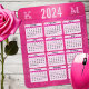 This trendy and unique glam girly design features a first and last monogram initial in pale pink in on the left and right, respectiviely, in popular serif typography along with a customisable first and last name in popular script with a hand-lettered look in pinkish white. The year 2024 is in the middle in easy-to-read sans serif typography.The background includes brushed hot pink fucshia magenta metal at the top and glimmering hot pink diamonds behind the matching 2024 calendar for added glitter and sparkle. You can personalise this item by changing the monogram and name in the product template.
