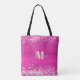 Hot Pink Glitter Bokeh Monogram Tote Bag