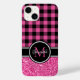 Hot Pink Glitter Buffalo Plaid Monogram Case-Mate iPhone Case