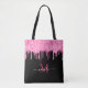 Hot Pink Glitter Drip Monogram Name Black Tote Bag