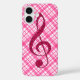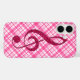 Hot Pink Glitter Treble Clef on Pink Plaid Case-Mate iPhone Case