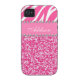 Hot Pink Glitter Zebra Print Rhinestone Girly Case