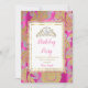 Hot Pink Gold Damask Grey Tiara Birthday Party Invitation