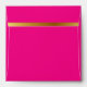 Add a pretty punch to your invitations, with this glamourous square envelope done in bright pink. Graphics of a gold tone to pink foil gradient look covers the inside of the envelope and a gold stripe decorates the back flap. Black return address, on the front, is ready to personalise. Gorgeous finishing touch to our gold and pink sweet 16 birthday invitation.