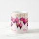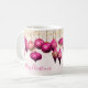 This elegant holiday coffee mug features beautiful Christmas ornaments in hot pink and gold with gold string lights on a soft pink background. Text "Merry Christmas" can be easily changed by clicking "Personalise". Perfect for that holiday cup of coffee or cocoa.