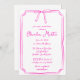Hot Pink Hand Drawn Bow Bridal Shower Invitation