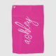 Hot Pink Handwritten Script Monogrammed Golf Towel