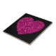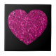 Hot pink heart faux glitter sparkles on black ceramic tile