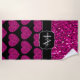 Hot pink heart faux sparkles pattern Monogram Beach Towel