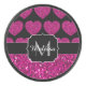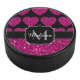 Hot pink heart faux sparkles pattern Monogram Hockey Puck