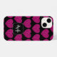Hot pink heart faux sparkles pattern Monogram iPhone Case
