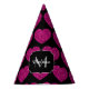 Hot pink heart faux sparkles pattern Monogram Party Hat