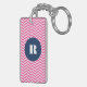 Modern and stylish monogram keychain featuring hot pink herringbone pattern with navy blue round tag. This will be perfect as a personalised gift. This design is available in a variety of colours and products.