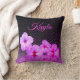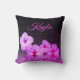 Hot Pink Hibiscus on Black and Pink Personalised Cushion