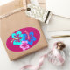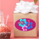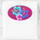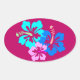 Hot Pink Hibiscus Pattern Oval Sticker