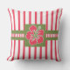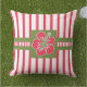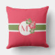 Hot Pink Hibiscus with Stripes Monogram Cushion