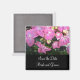 Pretty pink hydrangea blooms are featured here with a border of black on this lovely save the date magnet! Customise as desired.