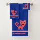This thick, velvety towel set features a cute cartoon style, quirky hot pink kitty cat on a rich blue background w/ alternating white & hot pink borders above a wide blue band at bottom. Bath size is ready to personalise w/ your (or your kid's) name, hand towel has space for a monogram.