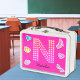Hot Pink Letter N Monogram Girly Back To School Metal Lunch Box