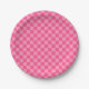 Hot Pink Light Pink Chequered Pattern Paper Plate