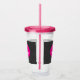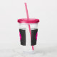 An acrylic tumbler with an illustration featuring hot pink lips. Bold and vibrant image. Set on a black mottled background.
