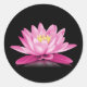 Hot pink lotus flower on black background classic round sticker