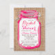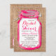 rustic bridal shower invitations, country bridal shower invitations, mason jar, canning jar, mason jar bridal shower invitations, bridal shower invitations, country western bridal shower, western bridal shower, country bridal shower ideas, vintage, hot pink, pink, fuchsia, burlap mason jar bridal shower invitations