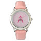 Introducing a timeless accessory designed for those with a discerning taste for elegance. This custom monogram watch, featuring the hot pink initial "A" in a modern script, effortlessly combines sophistication with a playful pop of colour. The soft blush leather strap offers comfort and luxury, while the sleek silver-tone case adds a refined touch. Perfect for everyday wear or special occasions, this watch is not just a timepiece—it's a personalised statement. Ideal for those who appreciate the art of subtle yet striking design, this watch complements any wardrobe with a touch of personalised flair.