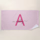 Wrap yourself in effortless elegance with this custom beach towel, perfect for any sun-soaked getaway. Featuring a striking hot pink monogram set against a soft blush background, this towel offers the ultimate blend of chic and personal style. Its modern design, highlighted by the delicate script, brings a touch of luxury to your time at the beach, pool, or outdoor lounging. Crafted for those who appreciate the finer details, this towel combines both comfort and class in every thread.