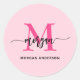 Hot Pink Modern Script Girly Monogram Name Classic Round Sticker