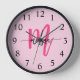 Hot Pink Modern Script Girly Monogram Name Clock