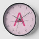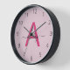 Hot Pink Modern Script Girly Monogram Name Clock