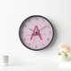 A striking blend of style and functionality, this personalised clock features a bold, hot pink monogram set against a soft pink background, showcasing an elegant, handwritten script for the name. The minimalist design balances vibrant modernity with a touch of femininity, making it a standout piece for any room that calls for sophistication. Its sleek black frame and precise numbering create a perfect harmony between timeless design and everyday practicality.