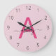 Hot Pink Modern Script Girly Monogram Name Large Clock