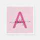 Hot Pink Modern Script Girly Monogram Name Napkin