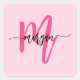 Hot Pink Modern Script Girly Monogram Name Square Sticker