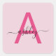 Hot Pink Modern Script Girly Monogram Name Square Sticker