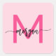 Hot Pink Modern Script Girly Monogram Name Square Sticker