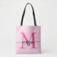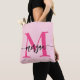 Hot Pink Modern Script Girly Monogram Name Tote Bag