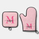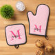 Hot Pink Monogram Girl's Kitchen Script Oven Mitt & Pot Holder Set
