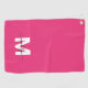 Create Your Own Personalized Custom Pink Modern Script Name Monogram Golf Towel. This girly golf towel now features a vibrant magenta background for a bold, fun pop of color. The design includes a clean white initial paired with a flowing black script name, giving it a personalized look that’s both stylish and modern. Printed on one side, it adds a cute and practical touch to any golf bag. It’s a great gift for birthdays, holidays, Mother’s Day, or any time you want to celebrate a golfer who loves a mix of flair and function. Perfect for anyone who enjoys keeping things bright, chic, and personal on the course.